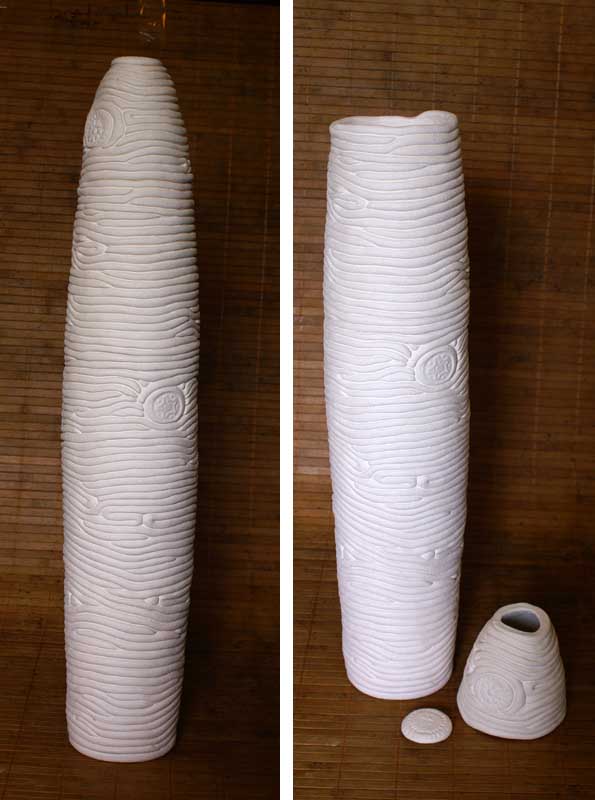 Made from white raku clay and designed to either be a free standing sculptural piece or used as a functional candle/treasures holder. Place sand in the top and then your favourite treasure from the beach or a beautiful candle.